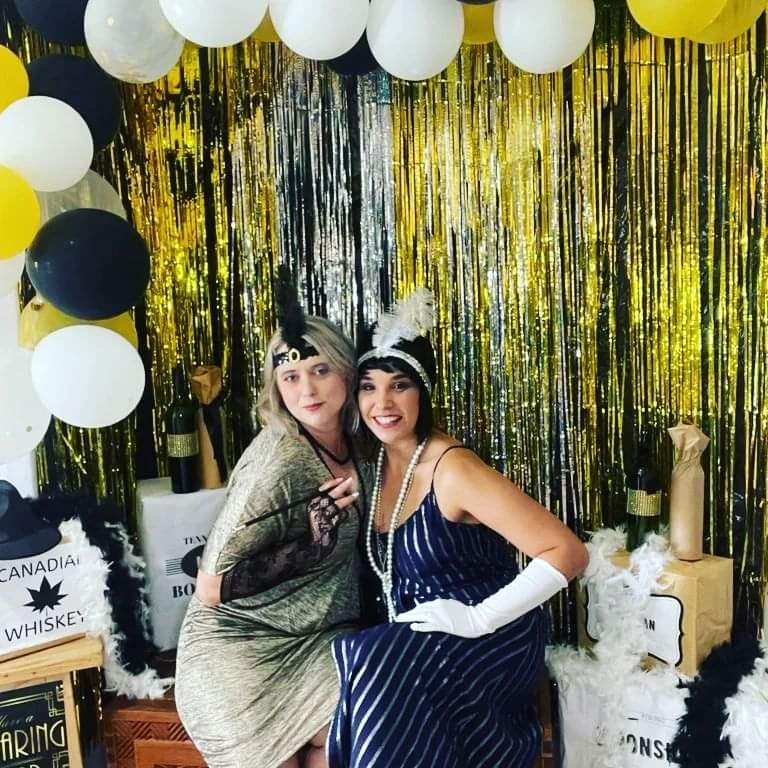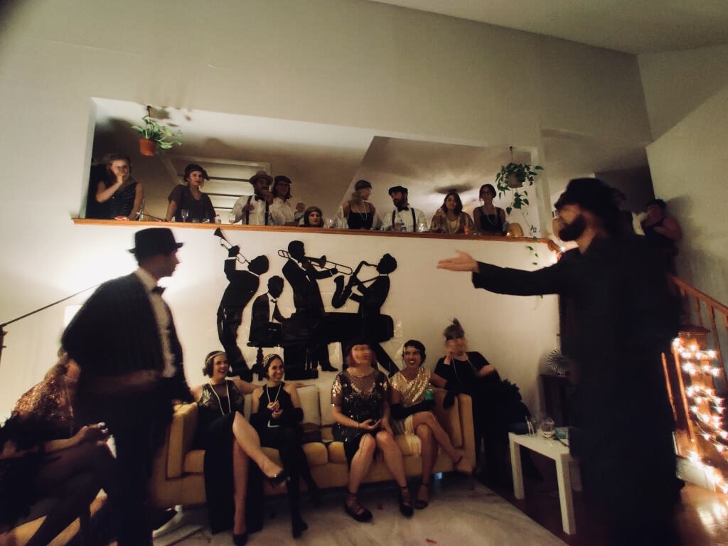 Theme Highlights We were in a penthouse apartment in NYC with views of the city, it was rainy on the day (perfect mood setting). We bought a bunch of 1920s themed decorations from Amazon too and made a picture wall