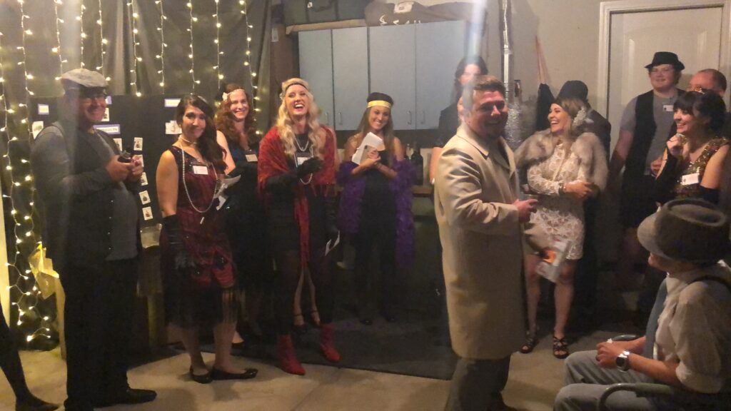 Work friends and clients partied roaring 20s style. Everyone got into character and really enjoyed the costumes! We had music and food to kick it off, everyone embraced their characters and the materials were so easy to use. They raves about the evening and we will be planning our next party Very soon!