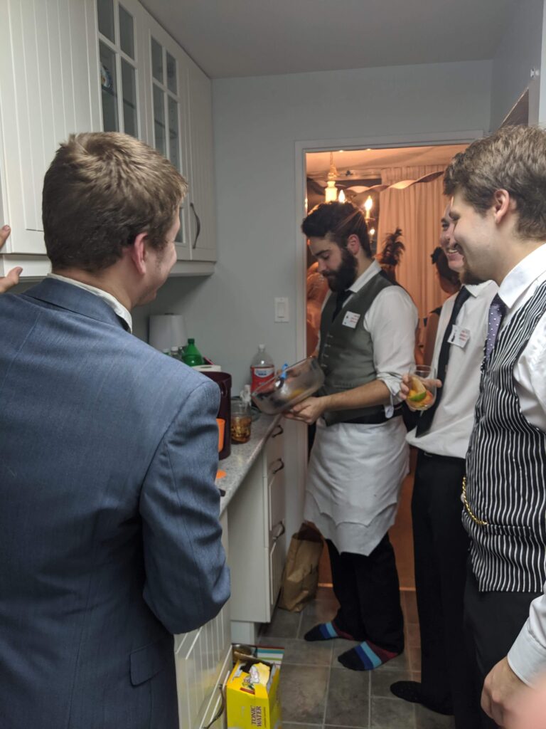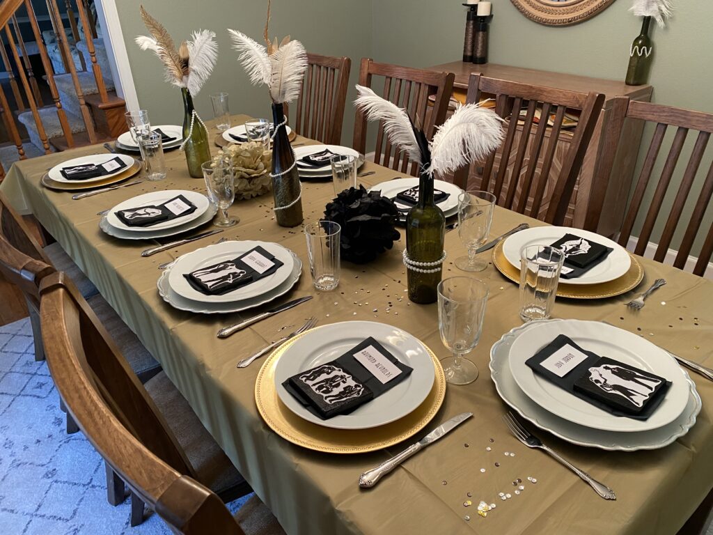 We had a dinner party of about 18 people with a sit down 5 course dinner. The night started a little late but in the end was really a fun night. I was the narrator and loved all my friends coming in character and staying in character and I would forget, then be confused by their behavior. And they would say “I’m in character!”