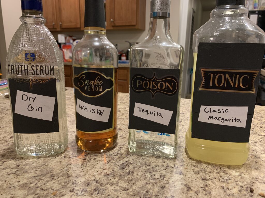 Menu Highlights Keeping with a budget, we had to cut down on food & drinks. Food consisted of store bought mini-quiches as entrées, small wood barrels filled with chips and for the main dinner, simply pizza presented in character as an italian delicacy. For drinks, we went with cheap sparkly cider bottles as a stand-in for champagne and locally brewed beer. Definitely something to spend more into if you have a higher budget as drinks are central to the theme.