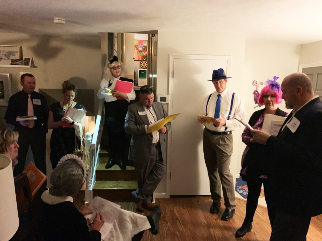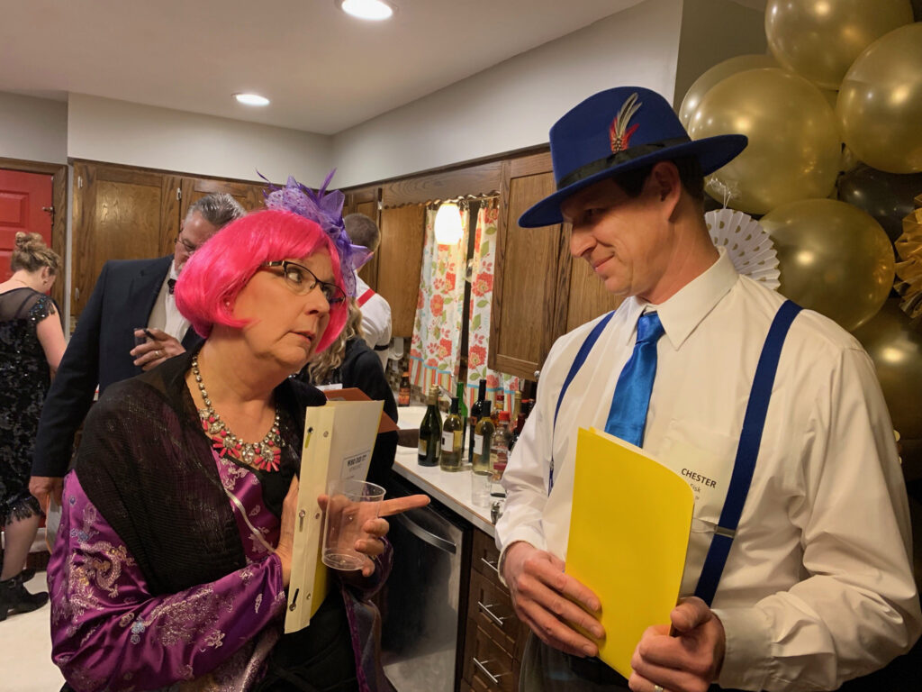 We had a great time with Murder in Manhattan! We were celebrating a family birthday. The instructions were so well laid out and easy to understand. My husband (Mr. Fisk) and I (Taylor) dressed up and hand delivered characters two weeks before the party. We had an absolute blast!