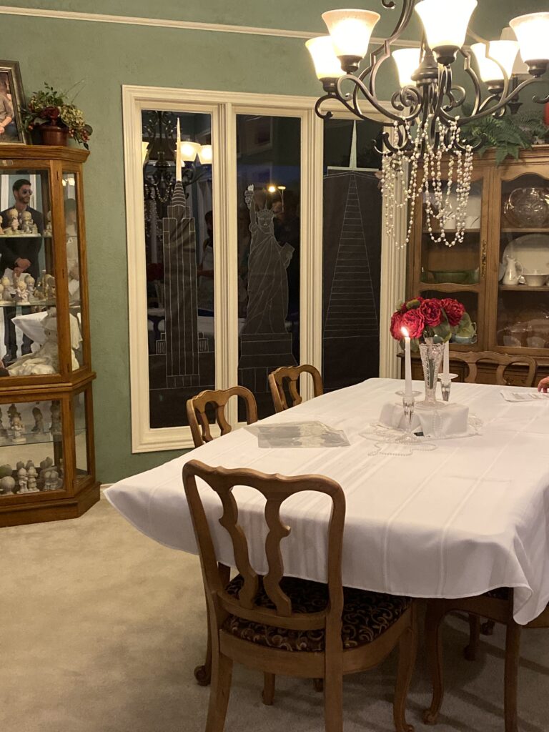 Theme Highlights We had the Manhattan skylight in our windows. Everyone dressed in their finest attire according to their character. And we dined on fine China and drank from crystal.
