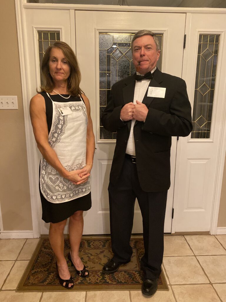 I invited people I play tennis with for something fun to do in January. I have hosted many parties of which maybe half invited will attend but every time I host a murder mystery everyone comes! I was overwhelmed by how much effort everyone put into their costumes and how hard everyone worked at solving the crime!