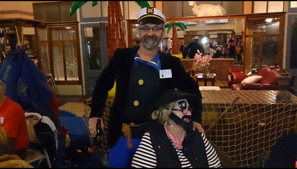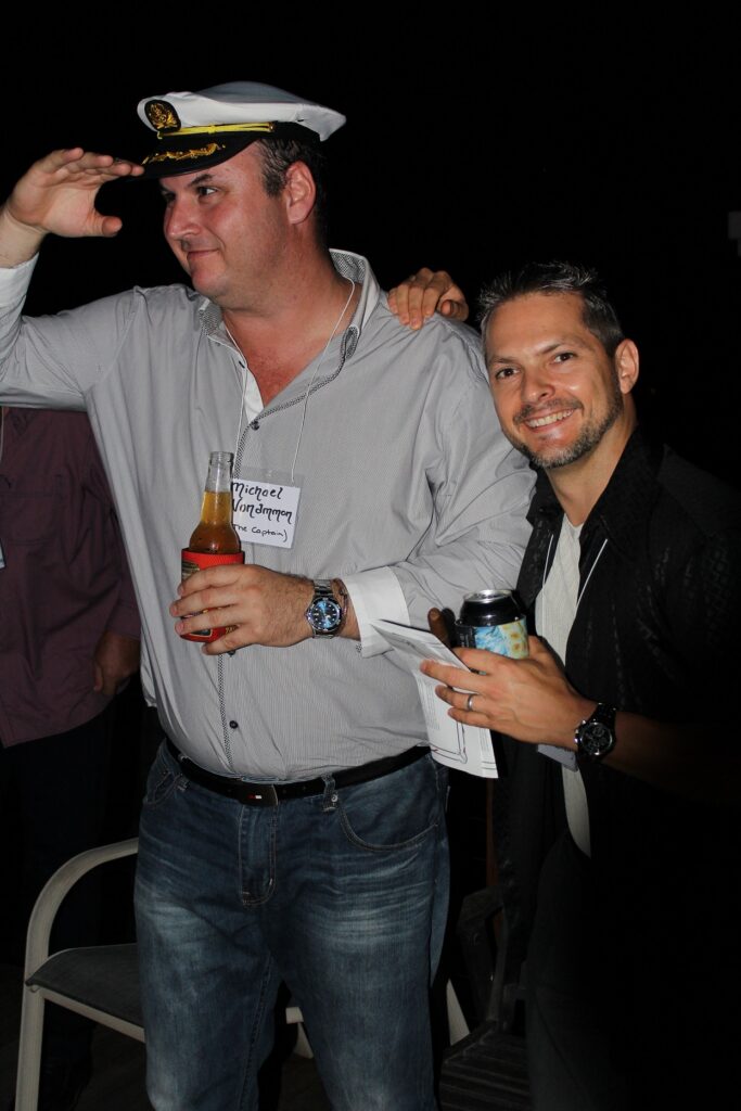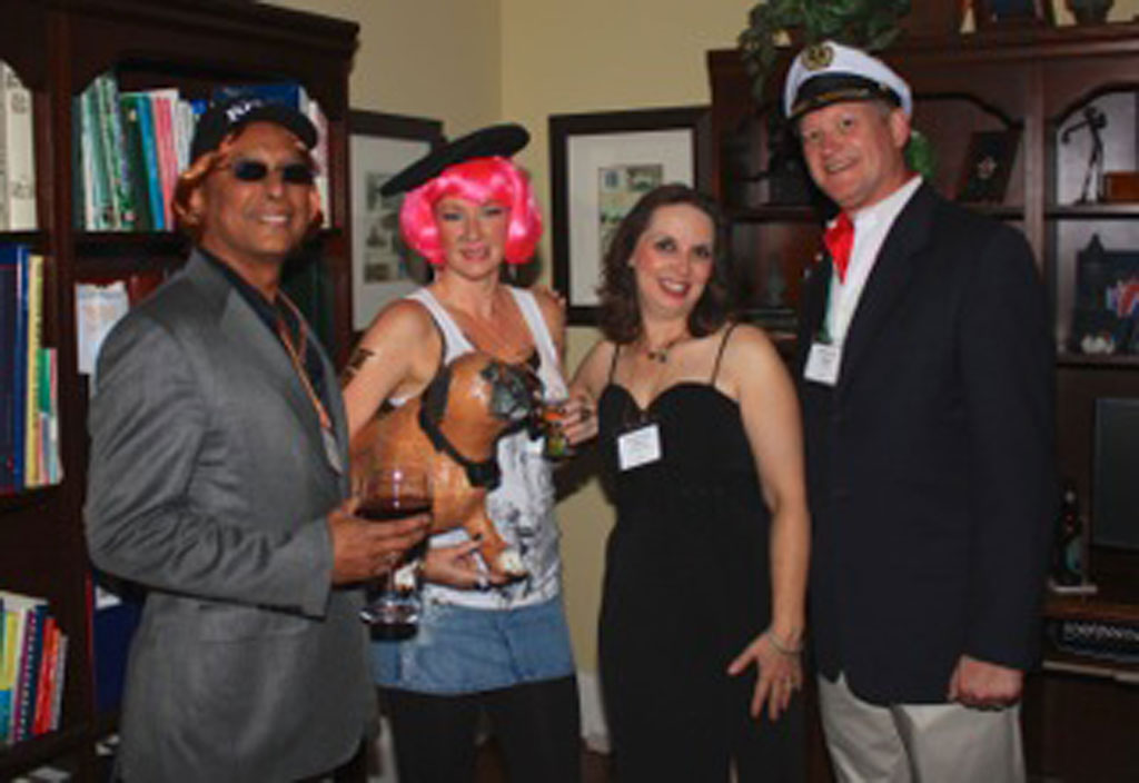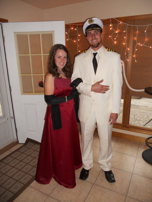 4. When guests came through the front door, I welcomed them (as Drew Henson) and introduced them to the Captain and his wife (a couple of amateur thespian friends of mine). The guests then had their picture taken with Captain and his wife by the Ship’s Photographer (another part written by me and played by my 19 year old son – who was dressed in a tuxedo).