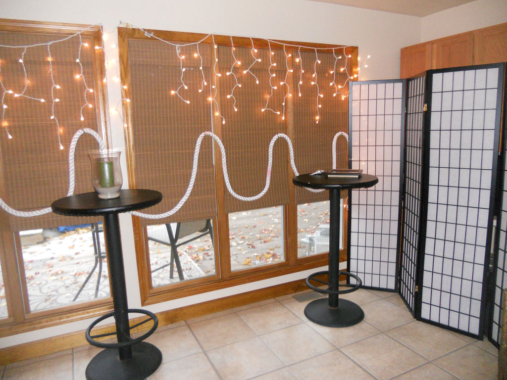 3. I own a small sailboat, a dinghy, which I set up on our front lawn, complete with sail and up-lit which guests saw as they were driving up. I also had the theme song Gilligan’s Island playing on constant loop playing on my iPod.