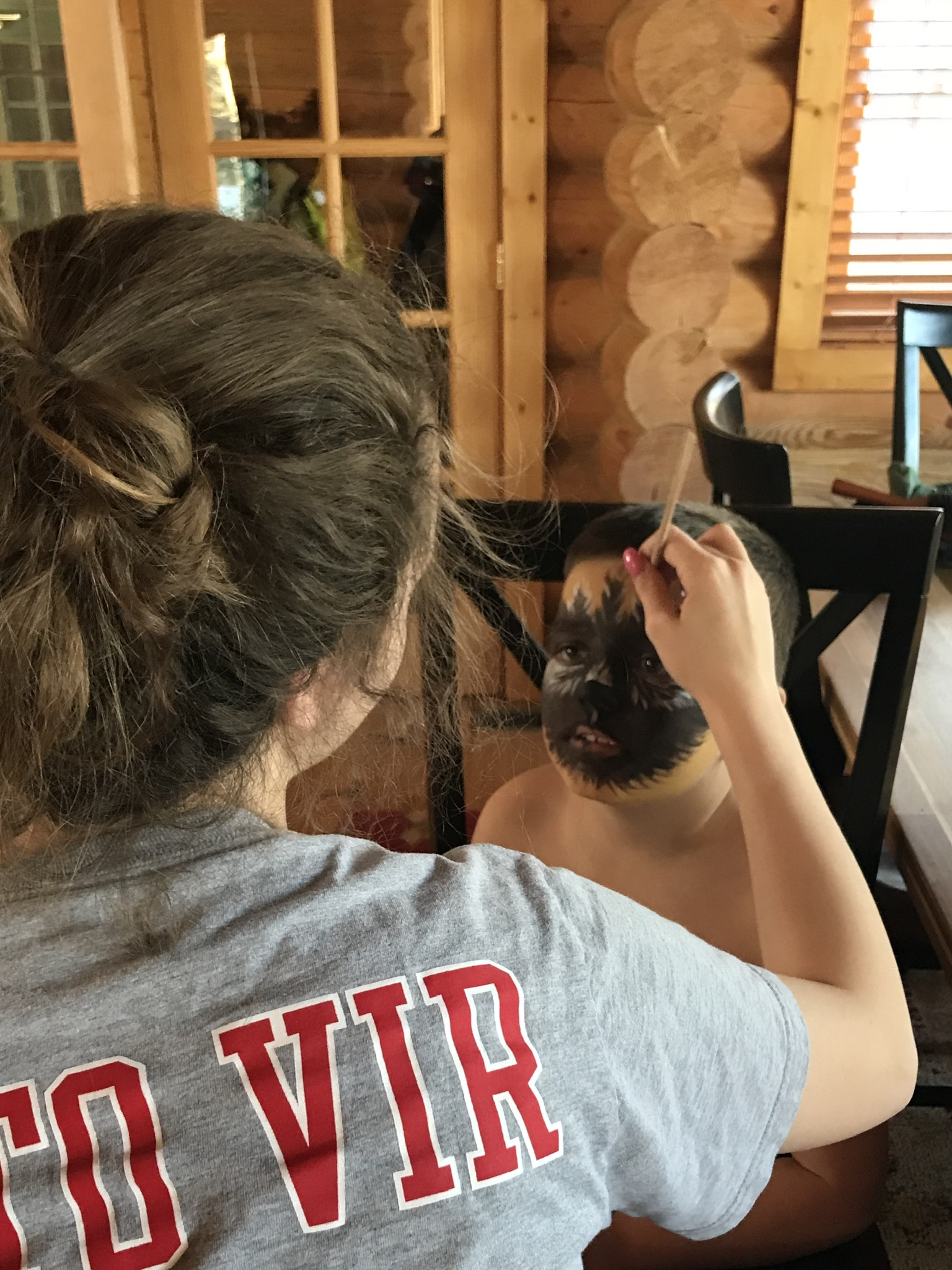 Julia brought face paint so the 15-year-old could paint everyone’s face to enhance their roles.